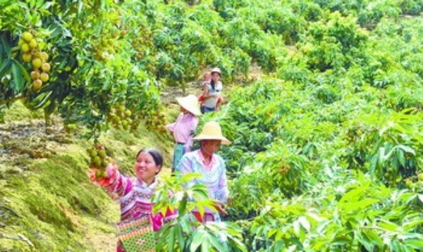 6月1日,在云南省屏边苗族自治县玉屏镇卡口村国安水果园艺场荔枝种植示范基地,荔枝园里硕果累累。这里的1万多亩优质荔枝品种“妃子笑”已经成熟,果农们开始入园采摘新鲜荔枝上市销售。 新华社记者 陈海宁摄