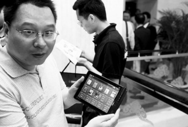 图为消费者展示手中的国产平板电脑。尽管没有键盘,但平板电脑依然具有笔记本电脑的各种功能。 本报记者 陈 静摄