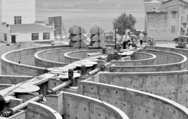 6月5日拍摄的三峡坝区三斗坪污水处理厂建设现场。在位于三峡工程坝区的湖北省宜昌市夷陵区三斗坪镇污水处理厂建设现场,工人们加紧安装污水处理设备,以确保污水处理厂按期投入使用。三斗坪污水处理厂是国家第三批三峡坝库区水污染防治项目,目前主体工程建设完成,进入设备安装阶段。该项目预计今年底投入使用,当地的生活污水将得到净化处理,可有效改善坝库区