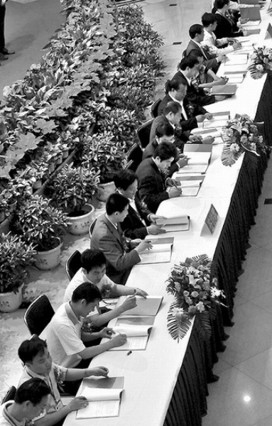 点评:5月19日,河南省三门峡投资贸易洽谈会举行签约仪式,签订经济合作项目76项,涉及能源、现代农业、旅游、高新技术等9个领域,签约总额达538.9亿元。据介绍,本次投资贸易洽谈会面向海内外推介经济合作项目,共邀请了600多家中外客商参加。