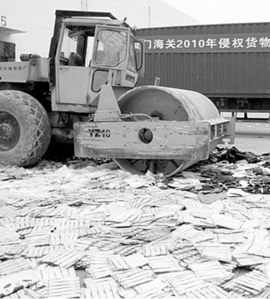 点评:4月26日是世界知识产权日。厦门海关在厦门海沧一海关保税仓库集中销毁被查获的108万余件侵权产品,其中包括汽车配件、MP3、手机及配件等。据悉,从2009年至今,厦门海关共查获侵权案件320起,查扣侵权货物425万余件,案值达3214万元。