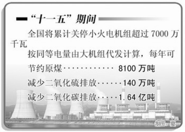 “利用‘上大压小’的鼓励性经济手段与执行节能发电调度的限制政策相结合,确保7000万千瓦小火电如期关停”