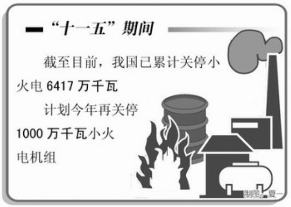 “为确保实现‘十一五’节能减排目标,电力行业在去年提前超额完成‘十一五’关停5000万千瓦小火电机组任务后,提出今年将再关停1000万千瓦小火电机组,关停难度不断加大”