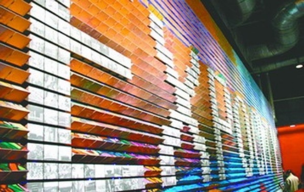 参观世博会上海馆,游客无不被该场馆外的一面由成千上万幅图片组成的巨大像素墙所吸引。这面名叫“上海看不完”的像素墙,长达33米,高7米,能不断变换图片组合,呈现出“永远的新天地”、“上海祝福你”和“世博之城”3个主题的图案,向观众展示上海这座世博会主办城市的绚丽多彩。走近一看,发现这面墙是由5000多块可旋转的三棱柱体组成,在机械驱动下旋转这些柱体,像素墙可为参观者呈现15000余个表面,每个表面上都印刷有反映上海今日风貌的大众摄影创作。这最终形成了15000余个展示窗口,实现了主办方提出的打造一个“大家的上海馆”的设计理念。考虑到有些观众可能会对像素墙进行一些触摸或干扰,像素墙还有一项不为一般人所知的特殊功能,即展示的三棱柱体能自动感知运行状况,并实现自动定位和复位,保证其运行能按照预定编排的效果持续智能演示。