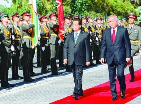 卡里莫夫表示,在上海合作组织塔什干峰会即将召开之际,胡锦涛主席应邀对乌兹别克斯坦进行国事访问,是两国关系中的一件大事,也是两国友好合作伙伴关系发展进程中一个重要里程碑。他完全赞同胡锦涛对于乌中关系的评价以及关于发展两国关系的重要意见,认为这指明了两国双边和多边合作的方向。乌中全面友好合作关系建立在相互尊重、平等和互不干涉内政原则的基础上。乌方坚定支持一个中国原则,坚定支持中方在涉及中国主权和领土完整问题上的立场,坚定支持打击“三股势力”。