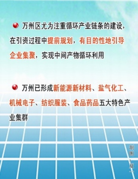 万州区尤为注重循环产业链条的建设,在引资过程中提前规划,有目的性地引导企业集聚,实现中间产物循环利用。