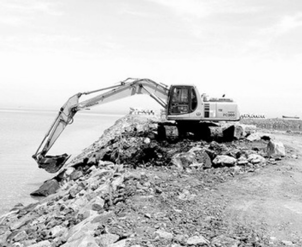 海南洋浦港区深水航道疏浚工程建设工地一瞥。洋浦港区深水航道疏浚工程是海南建省以来最大的用海项目,总投资6.1亿元。 本报记者 陈发卿摄