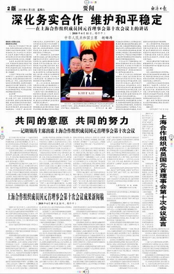 上海合作组织成员国元首理事会第十次会议成果新闻稿