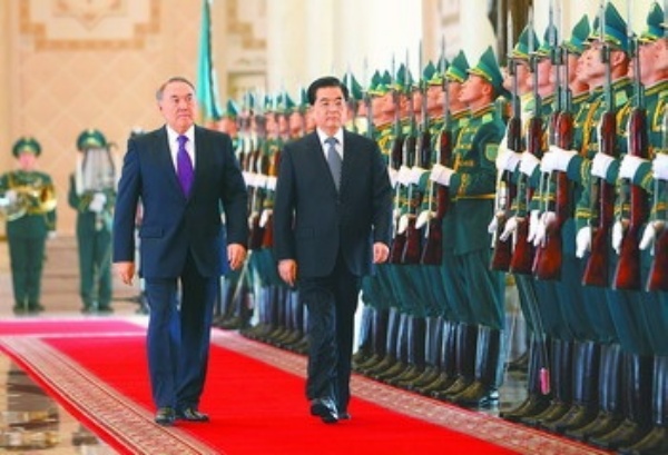 纳扎尔巴耶夫表示,热烈欢迎胡锦涛对哈萨克斯坦进行国事访问,这是胡锦涛第6次访问哈萨克斯坦,体现出两国关系的高水平,具有重要历史意义。他表示,完全同意胡锦涛关于发展两国关系的重要意见,哈方高度重视对华关系,高度评价两国建交18年来双边关系取得的长足进展。在相互信任和相互尊重基础上,哈中战略伙伴关系迅速发展。两国最高层交往频繁,各领域合作迈上新台阶。双边贸易迅速恢复增长,能源领域合作进展顺利,非资源领域合作进一步加强,一批重要基础设施项目正在落实,农业、交通、技术领域合作进展显著。中方向哈方提供投资贷款,对推动哈萨克斯坦经济社会发展具有重要意义。