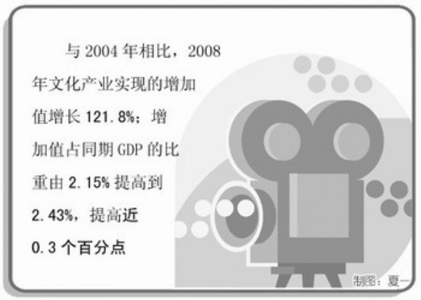 根据2004年国家统计局颁布的《文化及相关产业分类》,国家统计局利用2008年第二次全国经济普查的资料,对我国文化产业的发展情况进行了分析。数据显示,我国文化产业近年来获得长足发展,各项主要指标均明显提高。