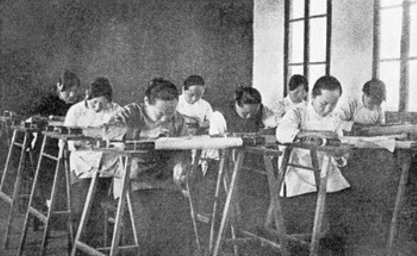 成立于1914年的南通县立女工传习所,几乎倾尽了沈寿毕生的心血。在沈寿艺术馆的二楼,陈列着一组历史照片和100年前的刺绣实物,无声地向人们“讲述”着发生在100年前关于仿真绣的一段故事。