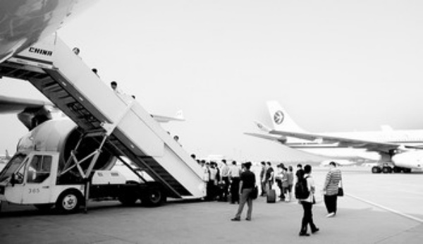 6月23日,北京首都国际机场,乘坐中国东方航空公司客机的乘客正在登机。作为2010年上海世博会全球合作伙伴,中国东方航空公司努力提升服务水平,为世博会提供良好的交通保障。 本报记者 李景录摄