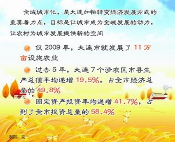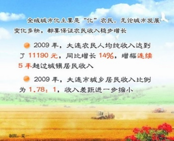全域城市化虽然着眼于城市发展,但统筹城乡的思路却给农业和农村工作带来了生机和活力。去年,大连农民人均纯收入达到了11190元。在大连我们看到了城乡协调发展的新趋势。