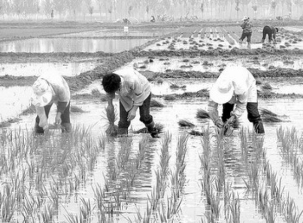 6月25日,山东省高青县赵店镇农民在采秧。连日来,靠近黄河、水浇条件便利的高青县农民,抓住黄河进行的第十次调水调沙有利时机,抢抓农时,施肥、犁田、插秧。 新华社记者 范长国摄