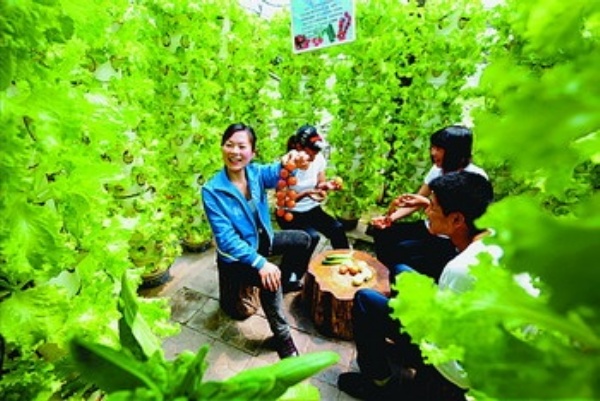 游客在集发生态农业观光园内品尝亲手采摘的新鲜水果。秦皇岛市推出集生态农业观光、体验民俗文化为一体的生态农业游,受到游人的青睐。