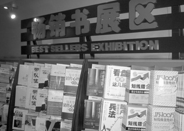 在许多书店,畅销书展区都占据了比较醒目的位置,图为西单图书大厦的畅销书展区。
