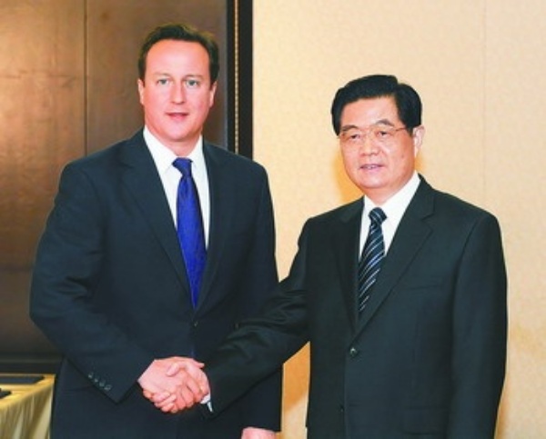胡锦涛指出,中方把英国看作重要的国际合作伙伴,双方建立了比较完备的交流机制,两国高层接触密切,各领域合作取得丰硕成果。中英关系的这一良好局面来之不易,值得双方珍惜。