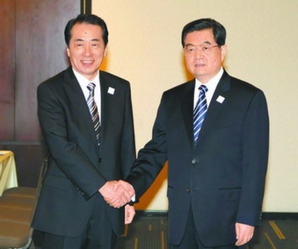 菅直人表示,首次作为日本首相同胡锦涛主席见面,感到格外高兴。日本新内阁十分重视发展日中关系,认为这不仅对两国十分重要,而且对亚洲和平与发展具有重要意义。日本政府将根据日中4个政治文件原则和精神推进日中关系。日方愿意同中方一道努力,进一步丰富两国关系战略内涵,推进高层往来以及政党、议会、各部门交流,加强各领域对话合作,发展两国互利双赢的经贸关系,加强人文交流特别是青年往来,共同推动东亚区域合作,妥善处理两国关系发展中出现的问题。
