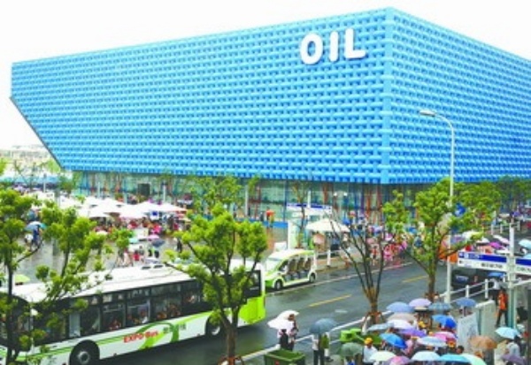 6月27日,上海浦西世博园区石油馆。该馆建筑外表为纵横交错的管状编织肌理,采用的是PC材料,这是一种可循环再利用的新型绿色石油衍生品。4000平方米的建筑外表下,还有几百万颗光源点,如此大面积的异型PC板组合LED精细成像的技术属全国首创。 本报记者 李景录摄