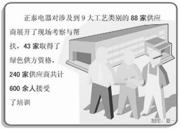 然而帮扶计划的推行,一开始并不受欢迎,部分供应商甚至有些抵触情绪。钱旭光告诉记者,“正泰的供方帮扶行为是免费的,但是供方根据我们的考评报告实施改进需要承担添置或更新设备的支出。”但很快供方看到了好处。“工艺改进和质量管理都得到质的提高,产品检验合格率从95.5%上升到97.8%,库存大幅度得以下降。”作为首批40家绿色认证之一的代表,浙江宏达电器有限公司负责人在2009年正泰电器供方大会上如是说。