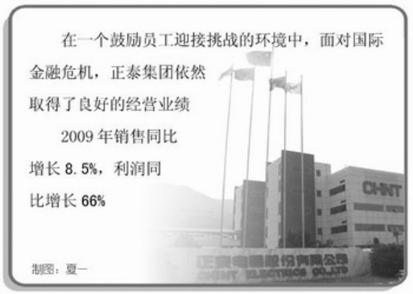 有能耐就有舞台,有作为就有地位————这是正泰给予每一位员工的承诺。即使在国际金融危机时期,这个拥有2万多员工的民营企业依然取得了良好的经营业绩,2009年销售同比增长8.5%,利润同比增长66%。