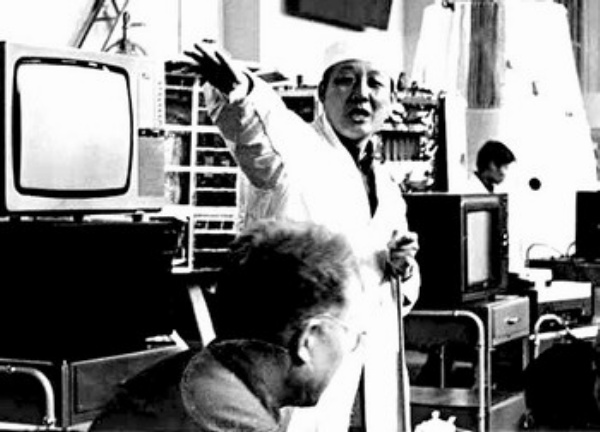 图3:上世纪70年代,孙家栋在卫星测试厂房中工作。