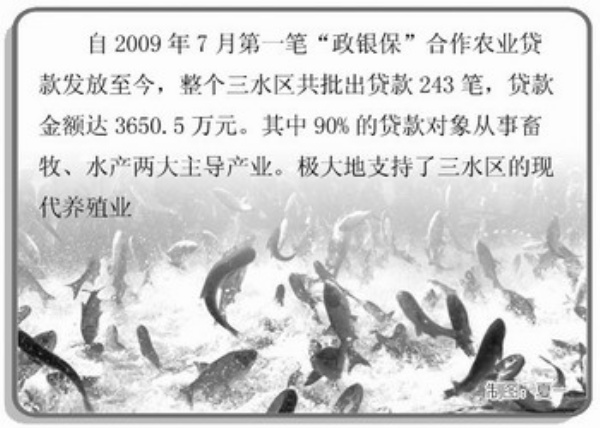 自2009年7月第一笔“政银保”合作农业贷款发放至今,三水共批出贷款243笔,贷款金额达3650.5万元,其中90%的贷款对象从事畜牧、水产两大主导产业,极大地支持了三水的现代养殖业。