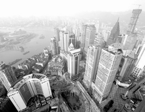 上图:高楼林立的重庆主城区一角(6月17日摄)。 新华社记者 周衡义摄
