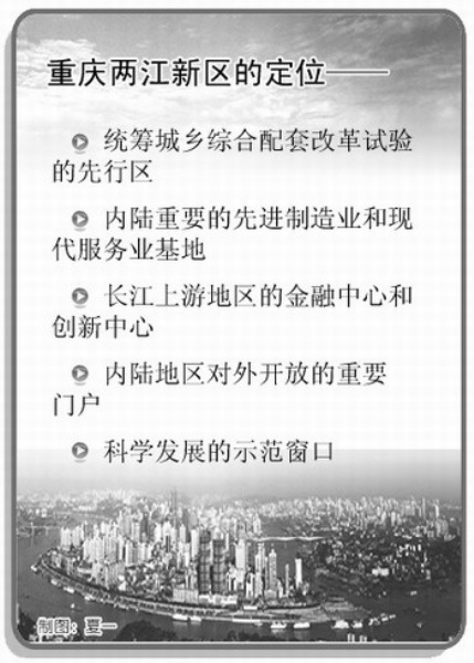 6月18日,继上海浦东新区、天津滨海新区之后,我国第三个国家级开发开放重点新区———两江新区在重庆正式成立。