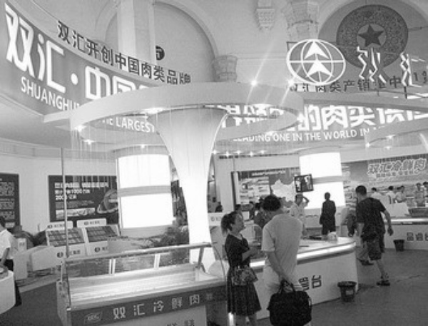上图 第八届中国国际肉类工业展览会现场,消费者正在选购产品。