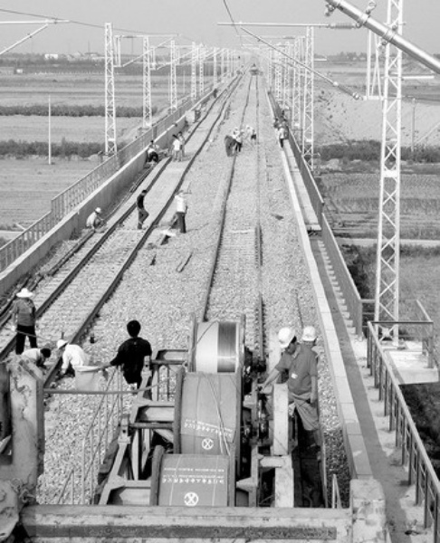 建设者在陕西省蒲城县境内的包西铁路施工现场加紧架设接触网导线。在建设者的奋战下,被誉为中国西部“乌金走廊”的包头至西安铁路(包西铁路)今年年底可望全线通车。