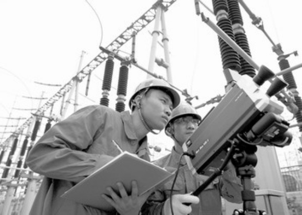7月5日,安徽省淮北供电公司员工在变电站用激光点测仪器对电网进行检测。当日,安徽省淮北供电公司启动紧急预案,加强24小时特巡,确保电力可靠供应。 王 文摄(新华社发)