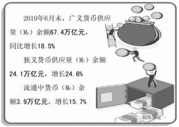 6月末,广义货币供应量(M2)余额67.4万亿元,同比增长18.5%;狭义货币供应量(M1)余额24.1万亿元,增长24.6%;流通中货币(M0)余额3.9万亿元,增长15.7%。金融机构人民币各项贷款余额44.6万亿元,比年初增加4.6万亿元,同比少增2.7万亿元;人民币各项存款余额67.4万亿元,比年初增加7.6万亿元,同比少增2.3万亿元。