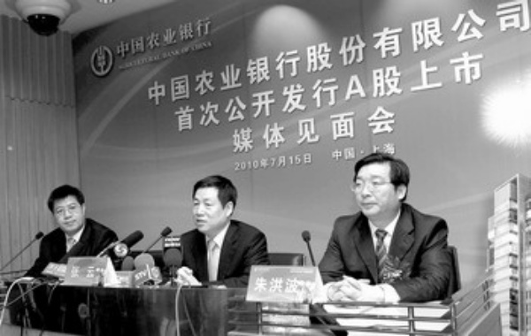 7月15日,代码为601288的中国农业银行A股股票在上海证券交易所上市交易,7月16日,农业银行H 股股票以代码01288在香港证券交易所正式挂牌。至此,创下全球筹资规模最大IPO记录的农业银行完成了股份制改革的重要步骤,成功步入资本市场。