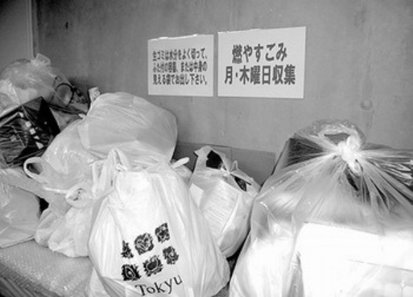 家庭垃圾必须在规定时间放到规定的垃圾回收场所。根据不同的公寓,一般每周回收两次。为了防止猫或乌鸦等啄食垃圾,要求在回收日当天上午8点前放到指定回收点。电池则需要送到指定的回收点回收,一般在区役所(区政府),公民馆、高速公路休息站、便利店和部分的商店都设有回收箱。街上还经常可以看到和听到垃圾车喇叭在叫喊的回收电器等大型垃圾的声音。