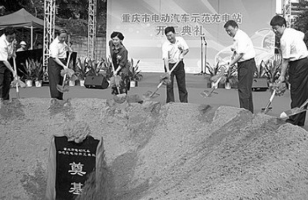 | 近日,重庆市首座电动汽车充电站建设开工,该站计划9月份建成。据介绍,站内充电机系统包括3台直流充电机和2台交流充电桩,可满足大、中、小型多种电动汽车的充电需求。重庆市电力公司计划,今年建设1座电动汽车充电站和50个交流充电桩,建成后将在主城区初步形成充电设施服务网络。 新华社记者 郭 立摄 |