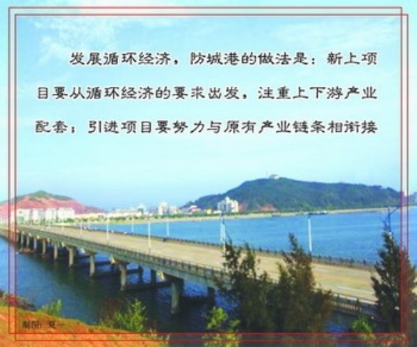 防城港市市长莫恭明告诉记者,“协调经济发展与保护环境的关系,我们的做法是,新上项目要从循环经济的要求出发,注重上下游产业配套,引进项目要努力与原有产业链条相衔接。”