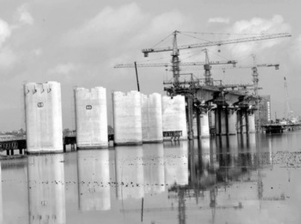 修建中的厦深铁路长沙湾特大桥(7月19日摄)。 正在建设中的国家重点铁路建设工程厦(门)深(圳)铁路客运专线全长501.7公里、总投资288.3亿元。参加厦深铁路广东段建设的中铁十八局集团公司4000多名建设者克服困难,科学组织施工,目前所担负的桥梁、隧道等重难点工程进展顺利。 新华社记者