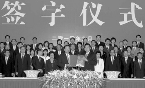 6月29日,海协会与台湾海基会在重庆签署《海峡两岸经济合作框架协议》(ECFA)、《海峡两岸知识产权保护合作协议》。中共中央台办、国务院台办主任王毅表示,这是“两岸关系和平发展进程中的又一重大进展,也是两岸关系史上又一座里程碑”。