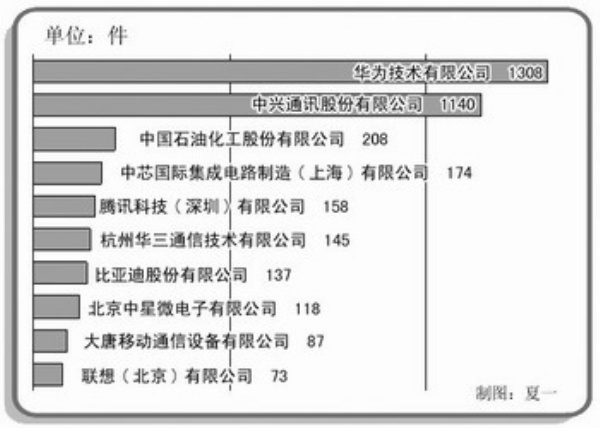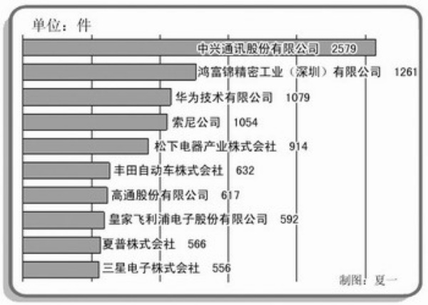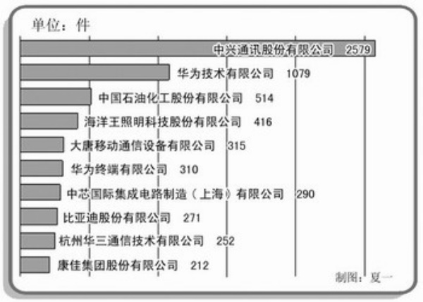 发明专利申请前10名企业