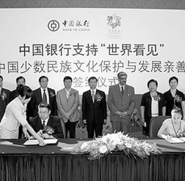 近日,“世界看见”中国少数民族文化保护与发展亲善行动之2010民族手工艺寻访之旅启动仪式在中国银行总行大厦举行。图为中国银行、联合国开发计划署等相关人士出席启动仪式。 (中国银行供图)