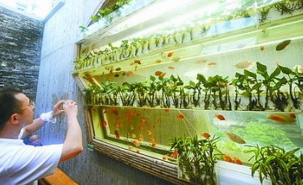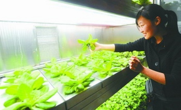 天下一家展馆内的生态实验室,参观者了解无土栽培技术。