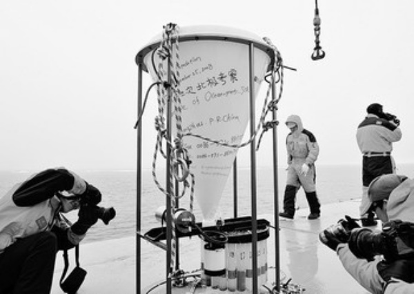 这是7月29日拍摄的深海潜标上的声学海流剖面仪(ADCP)。 当日,我国第四次北极科学考察队在1600多米深的北冰洋海底成功回收一个长期观测潜标。该潜标由我国第三次北极科考队于2008年8月施放。 新华社记者 张建松摄