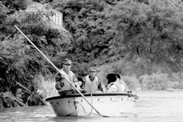 7月31日,部队官兵在抚顺市新宾县木奇镇的洪水中解救被困人员。 当日,辽宁省抚顺市遭受暴雨泥石流袭击,共21个乡镇、10万人受灾。部分受灾乡镇交通、通信、电力中断。当地驻军、消防、交通等部门正全力抢险,目前已安全转移1.36万人。 新华社记者 姚剑锋摄