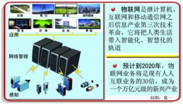 物联网光聚江苏无锡。去年年底,国务院批准无锡建设国家传感网创新示范区(国家传感信息中心)。
