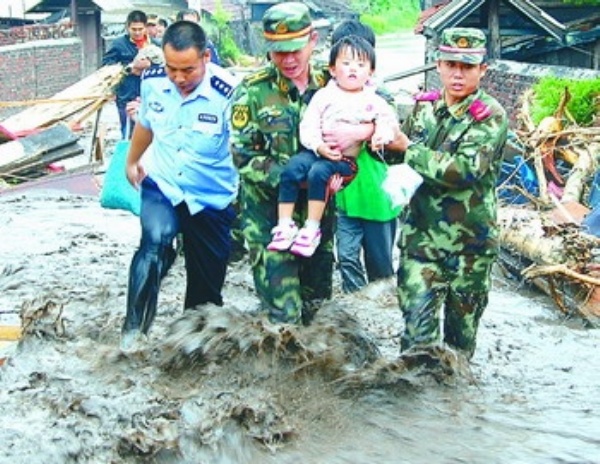 8月2日,吉林省公安边防总队临江市公安边防大队官兵帮助受灾群众转移。连日来,驻守在延边、白山、通化等地区的5000余名公安边防官兵奋战在抗洪一线,抢救受灾群众。 本报记者 张 静摄