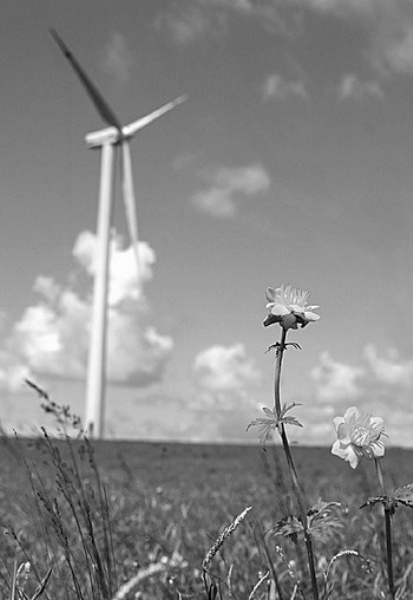 工作人员带记者钻进大唐集团投产的第一台风机———6号风机里,解释风机的工作原理,“风带动叶片转动,进而带动电机发电,然后通过地下电缆把电送到变电站升压上网。一台风机建成后可连续发电20年,除维护成本,几乎不再需要任何资源性投入,对生态环境影响很小。”