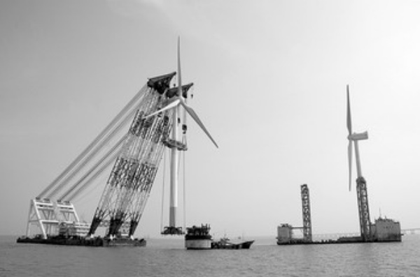 东海大桥东侧1公里—4公里、南汇岸线以南8公里—13公里的上海市海域,海上风力资源丰富,且比较适合建造海上风电场。于是上海东海大桥海上风电场于2008年9月开工,今年6月8日全部风机并网试运。东海大桥海上风电场由34台国产3000kW风电机组组成,总装机容量为10.2万kW,年发电量为2.67亿kWh。同时在我国风电场建设史上创造了多项“第一”:第一次采用自主研发的3兆瓦离岸型机组,标志着我国大功率风电机组装备制造业跻身世界先进行列;第一次采用海上风机整体吊装工艺;在世界上第一次使用高桩承台基础设计,有效解决了高耸风机承载、抗拔、水平移位的技术难题。如今,东海大桥风电场二期工程(10万千瓦级)前期工作已获有关部门批准。