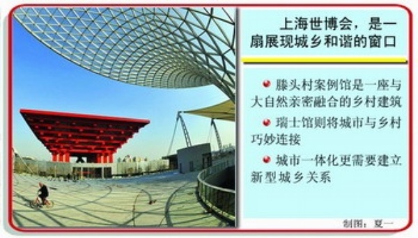 上海世博会在城乡互动方面的精彩实践,吸引了众多游客的关注。在他们眼里,世博会不仅是一场科技与人文的盛会,更是一扇“窗”,透过这扇窗,人们可以看到“村在景中、景在城中”的家园美景,可以感受城乡统筹下的和谐与繁荣,也更加明确了未来城乡一体化发展的方向与愿景。