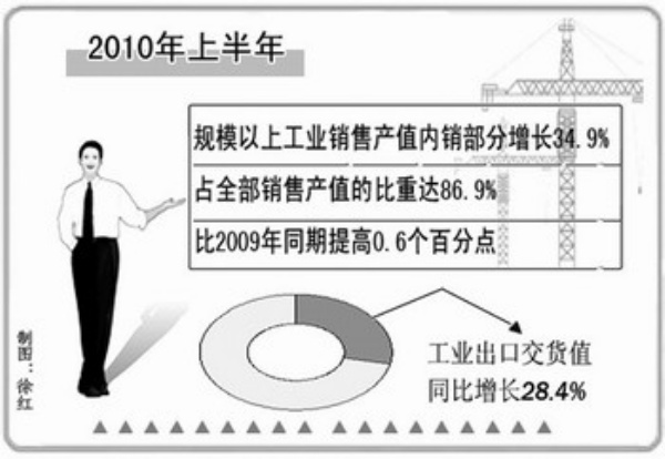 工业和信息化部党组成员、总工程师朱宏任分析说,上半年工业经济呈现出五大特征,包括:高耗能行业过快增长势头开始放缓;企业经营状况继续好转;内需拉动作用增强、外贸出口加快恢复;工业投资结构有所改善、中央财政技术改造专项进展顺利;结构调整取得进展、节能减排扎实推进。